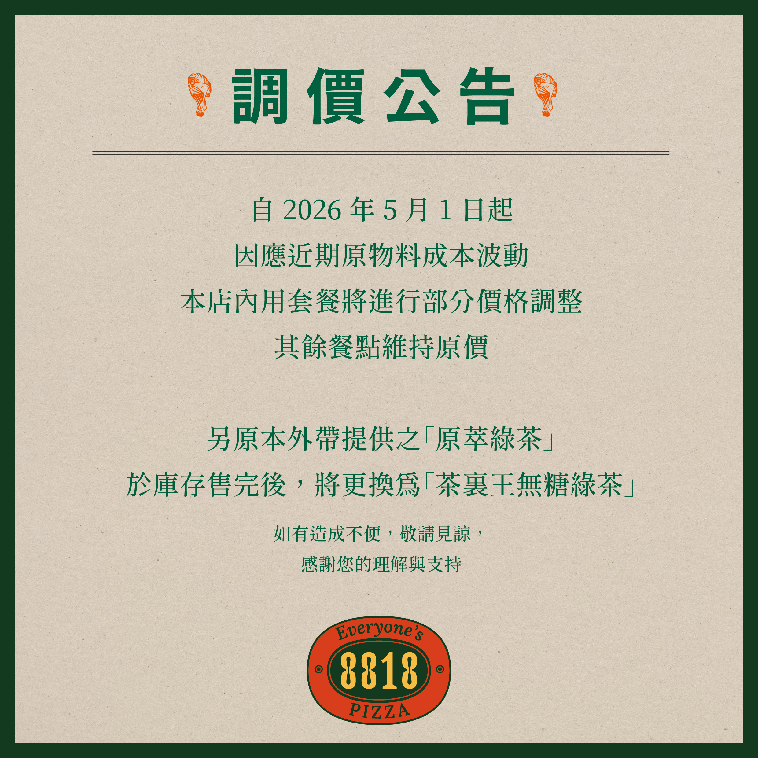 永康店粉絲專頁:https://www.facebook.com/8818pizzayk/