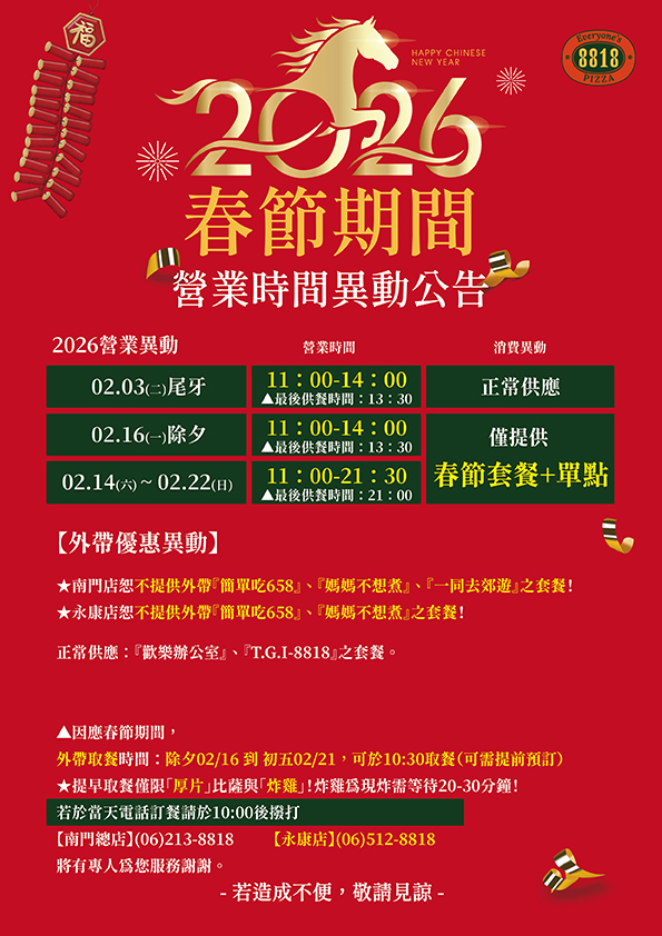 永康店粉絲專頁:https://www.facebook.com/8818pizzayk/